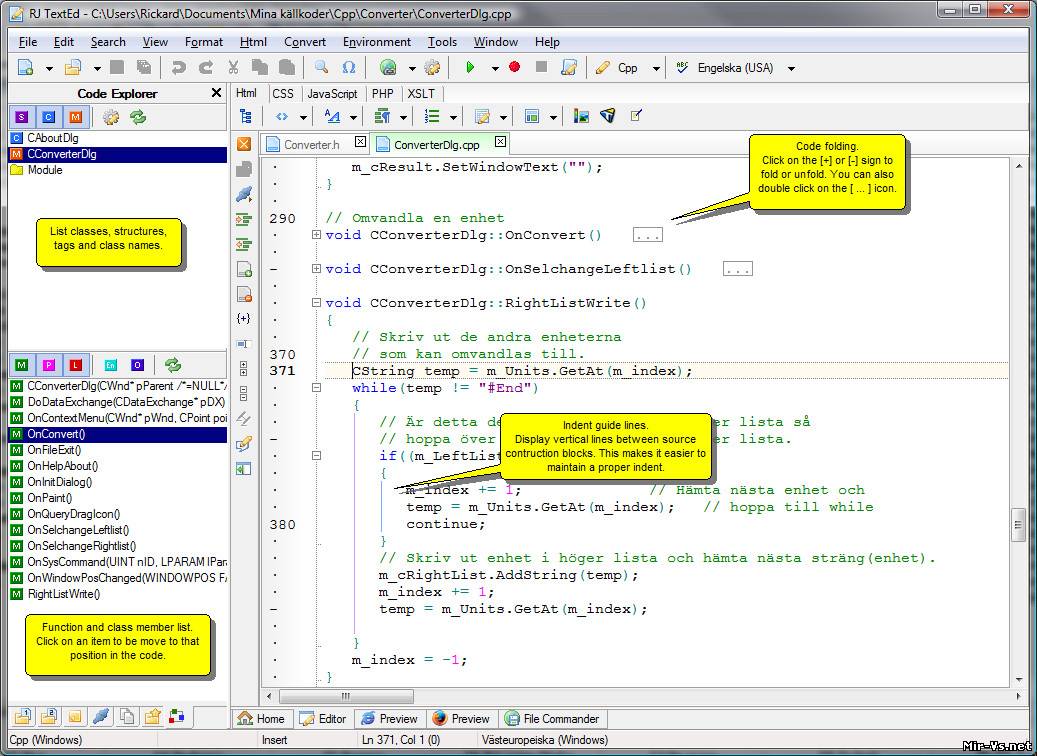 RJ TextEd — это редактор для программистов. Проверка и подсветка синтаксиса, работа с несколькими файлами в одном окне, меню с тегами, быстрая загрузка больших текстовых блоков, закладки и проверка кода на профпригодность — все в наличии. Расширить функционал редактора можно за счет плагинов.